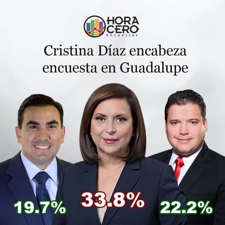 Tras el arranque de las campañas electorales, Cristina Díaz aparece a la cabeza en un sondeo para la alcaldía de Guadalupe, la priista tiene una intención del voto al 33%.